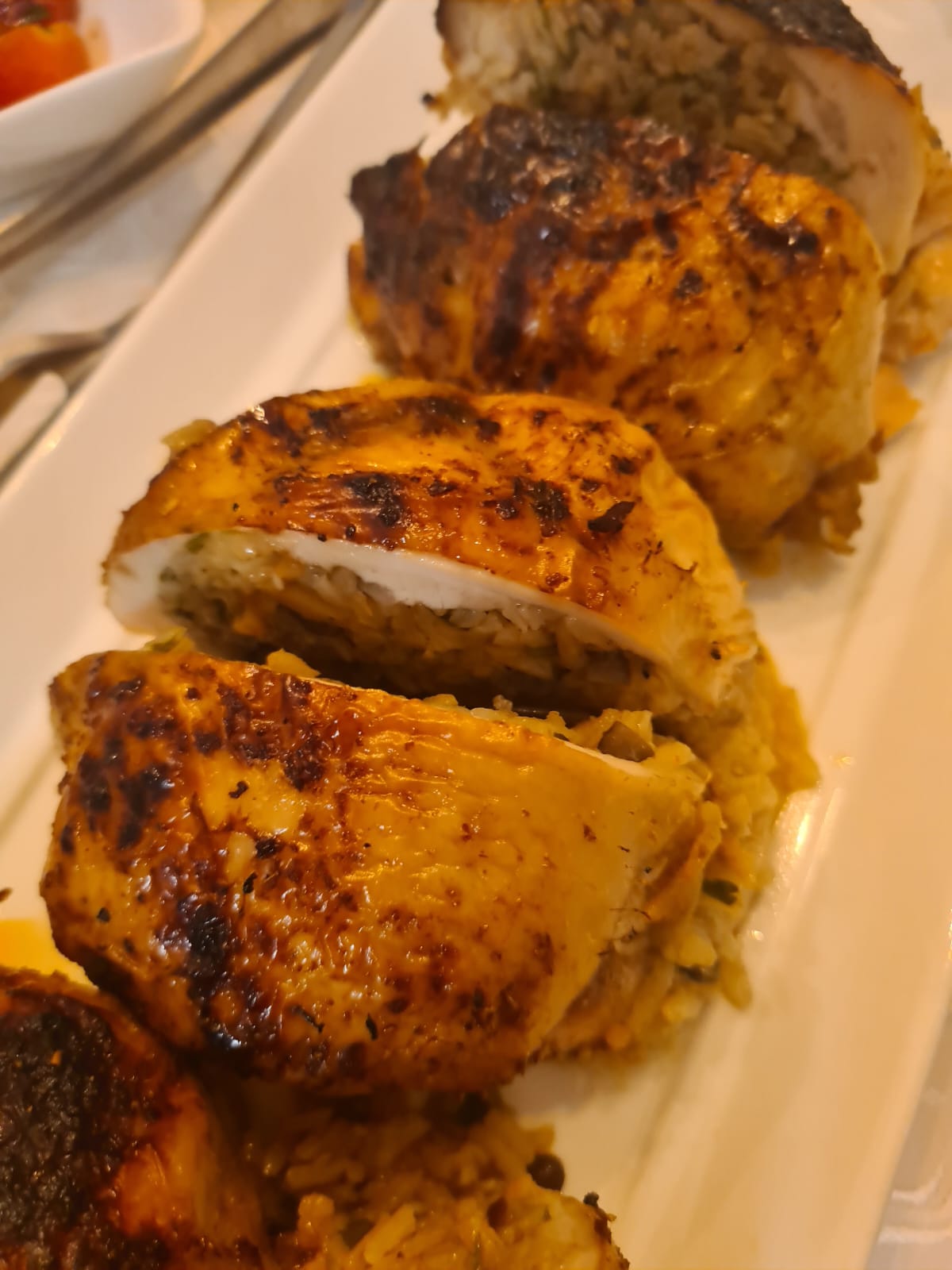 פרגית צעירה ממולאת עם בשר אורז ופיצוחים צלויה בתנור