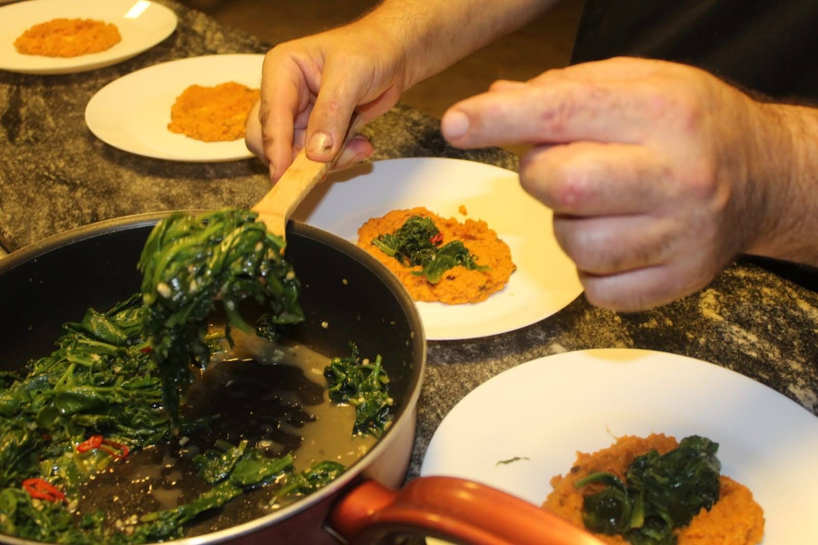 פילה אמנון על מצע בטטה מקורמלת ותרד מאודה