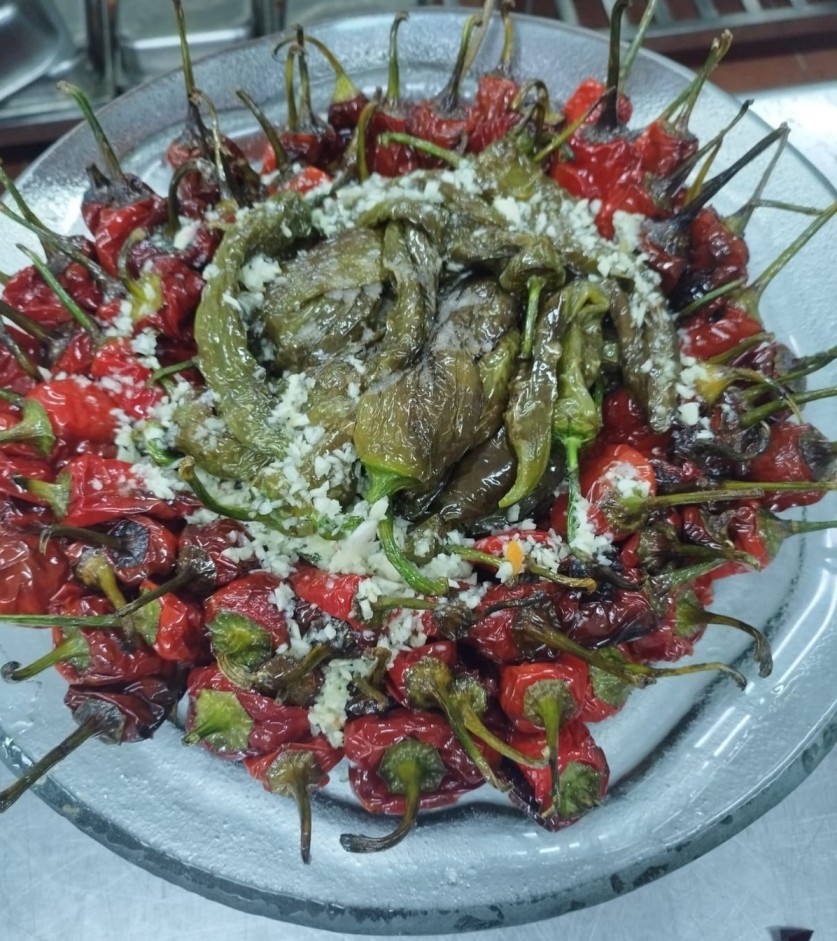 שלל פלפלים חריפים מטוגנים בלימון ושום