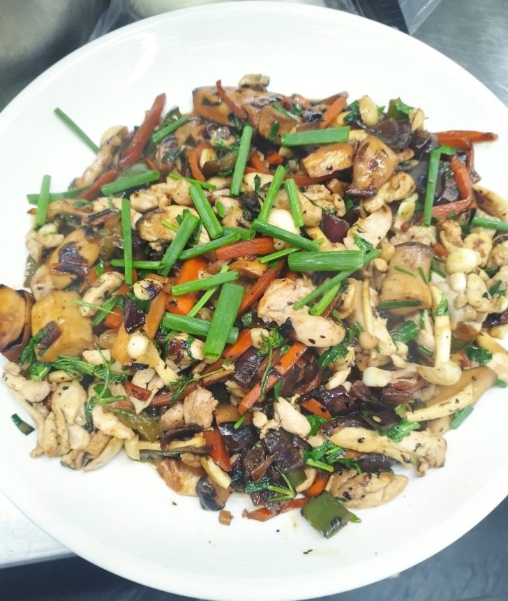 חזה עוף מוקפץ עם ירקות ג'ינג'ר שמן שומשום ובצל ירוק